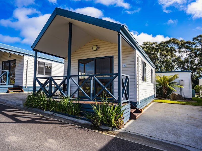 Our Family 2 Bedroom Cabins are a fantastic accommodation option for both families and friends. With a queen bed and TV in the main bedroom, two sets of bunk beds in the second bedroom, our Cabins will sleep six comfortably. A modern fully equipped kitchen has everything you need for your holiday including a full-size fridge, microwave, and stove top, ideal for cooking up a storm, modern bathroom, lounge with reverse cycle air con/heat pump, TV, dining area and undercover patio, our Cabins give guests a quiet home to come back to at the end of a fun-filled day exploring the East Coast.
